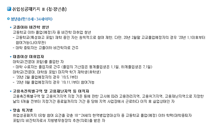 취업성공패키지의 지원 대상