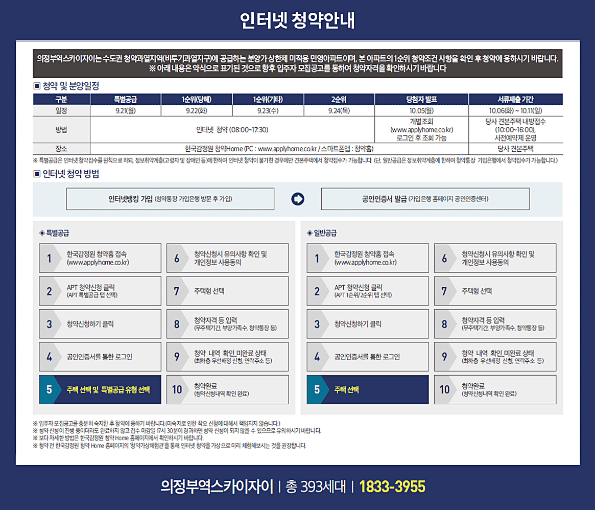 청약 일정은 9월 21일 특별공급을 시작으로, 22일 1순위 당해지역 청약을 받는다. 보다 자세한 내용은 아래 의정부역스카이자이 홈페이지 사이트 참고하세요!
