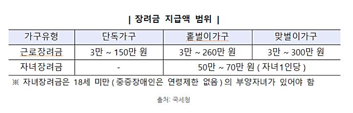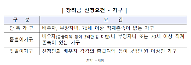 근로장려금은 가구별로 지급