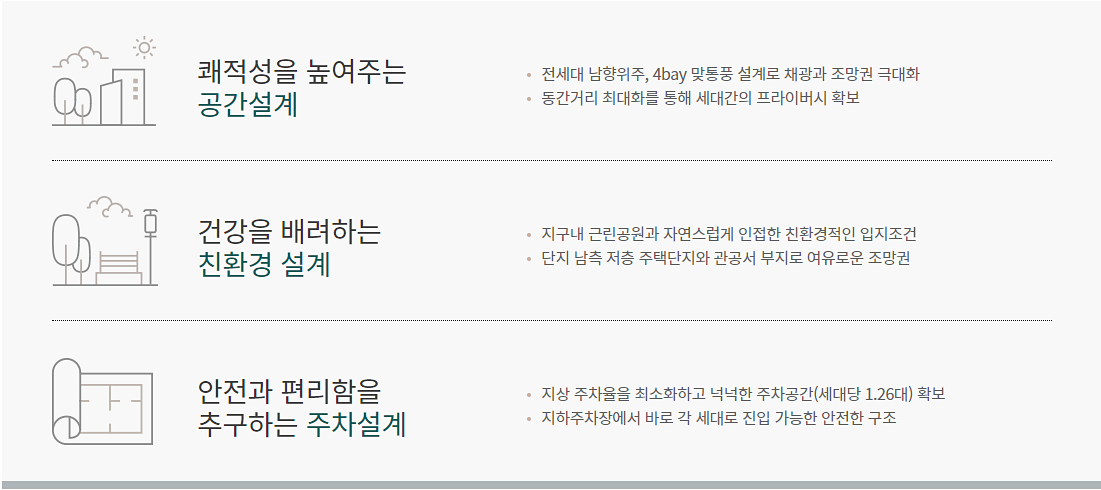 대우건설 푸르지오 브랜드에 걸맞은 우수한 상품성도 눈 여겨볼 점이다. 전 세대 개방감 높은 4베이를 적용하고, 4룸(84㎡A?B) 혁신 설계도 갖춘다. 드레스룸, 팬트리 등 라이프스타일에 맞게 다양한 공간 구성이 가능하며, 골프연습장, 독서실, 피트니스, 어린이집 등 입주민 커뮤니티시설도 들어선다.