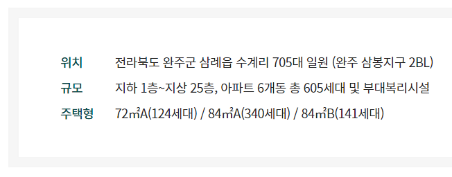 한편 견본주택은 완주군 삼례읍 수계리 322-1(완주소방서 옆)에 위치한다.