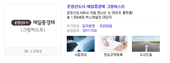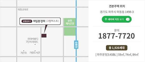 운정신도시 제일풍경채 그랑퍼스트 견본주택은 경기도 파주시 와동동에 들어서며 9월 중 오픈할 예정이다.