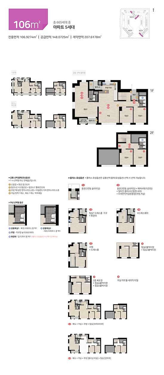 특화설계도 도입했다. 주거복합단지임에도 불구하고 4베이와 5베이 판상형 설계가 적용 됐다. 타입에 따라 드레스룸과 팬트리(일부타입), 알파룸(일부타입) 등을 구성해 공간 활용도 극대화 했다. 단지 3층에는 피트니스, 골프연습장 등 운동 관련 시설과 작은도서관, 어린이놀이터, 어린이집 등 보육 관련 시설도 함께 조성될 예정이다.