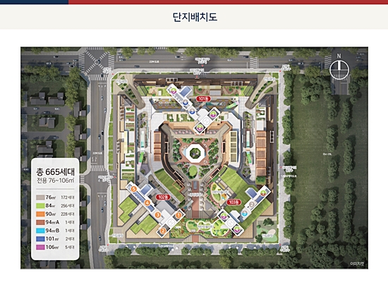 힐스테이트 고덕 스카이시티는 지하 2층~지상 49층, 3개 동 규모로 지어지며, 아파트 665세대와 연면적 6만521㎡ 규모의 상업시설 ‘어반그로브 고덕’이 함께 조성된다. 아파트는 전용면적별로 △76㎡ 172세대 △84㎡ 256세대 △90㎡ 228세대 △94㎡A 1세대 △94㎡B 1세대 △101㎡ 2세대 △106㎡ 5세대로 구성