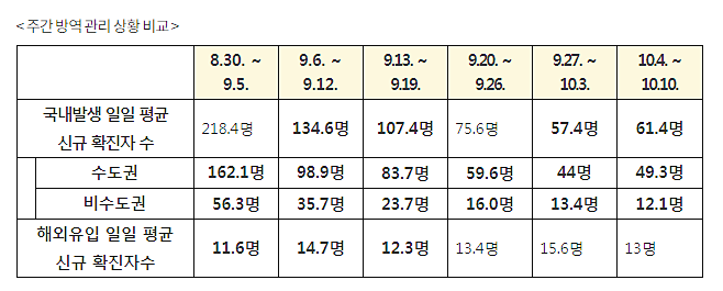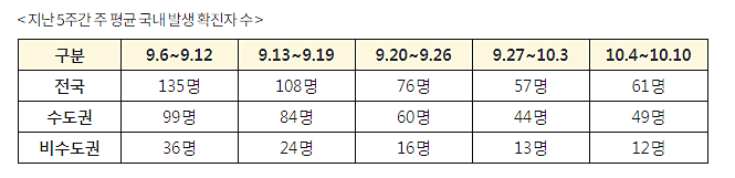 최근 2주간 국내 발생 확진자 수가 하루 평균 60명 미만으로 줄고