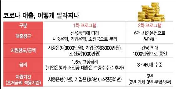 이에 코로나 소상공인 2차대출은 1차보다 지원대상은 확대되고