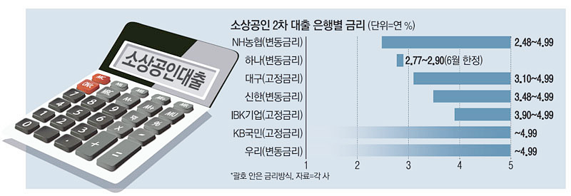 1차는 14개 은행에서 '이차보전대출'이란 이름으로 운영되고 있다.