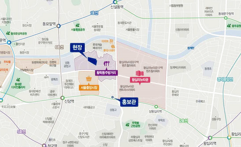동대문디자인플라자와 충무아트홀, 중구복지센터 등의 생활 인프라를 갖추고 있으며 왕십리민자역사와 이마트 청계천점과 근접한 위치에 있어 원스톱 쇼핑환경 역시 갖추고 있다. 연간 1,800만명 이상이 방문하는 청계천과 왕십리뉴타운 개발에 따른 미래투자가치도 높게 평가 받고 있다.