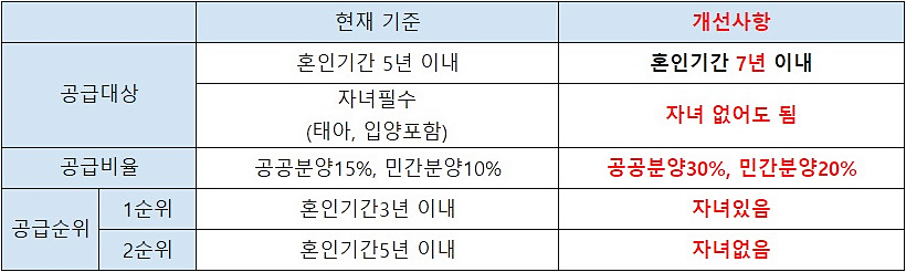 기존 신혼부부 자격 대상가구 대비