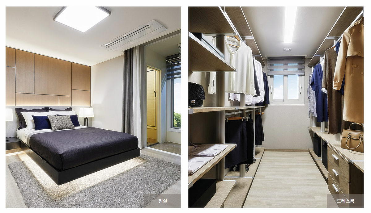 실내는 입주민들의 선호도를 반영해 창고형 팬트리, 현관 수납장, 안방 드레스룸, 다목적실 등 풍부한 수납공간이 마련되고 효율적인 기능 및 동선 확보를 고려한 'ㄷ'자형 주방도 일부 세대에 적용된다. 특히 전용 39㎡는 별도의 침실 이외에도 거실과 주방 사이에 중문이 설치돼 침실로도 활용이 가능하다. 뿐만 아니라 욕실에 샤워 부스를 설치해 편의성을 극대화했다.