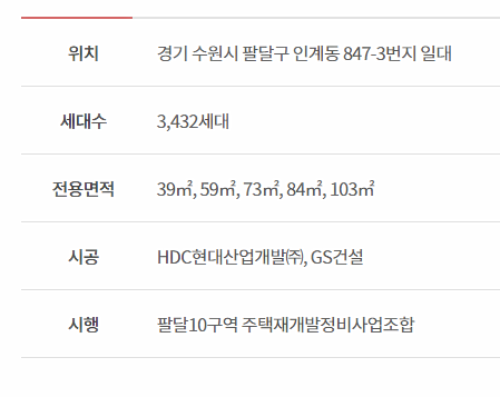 '수원 센트럴 아이파크·자이'는 지하 4층~지상 25층 30개동, 전용면적 39~103㎡ 총 3432가구 규모로 이뤄지며 이 중 2165가구를 일반분양한다. 다른 서울 경기 인천 분양 아파트는 아래에서 알아보세요.
