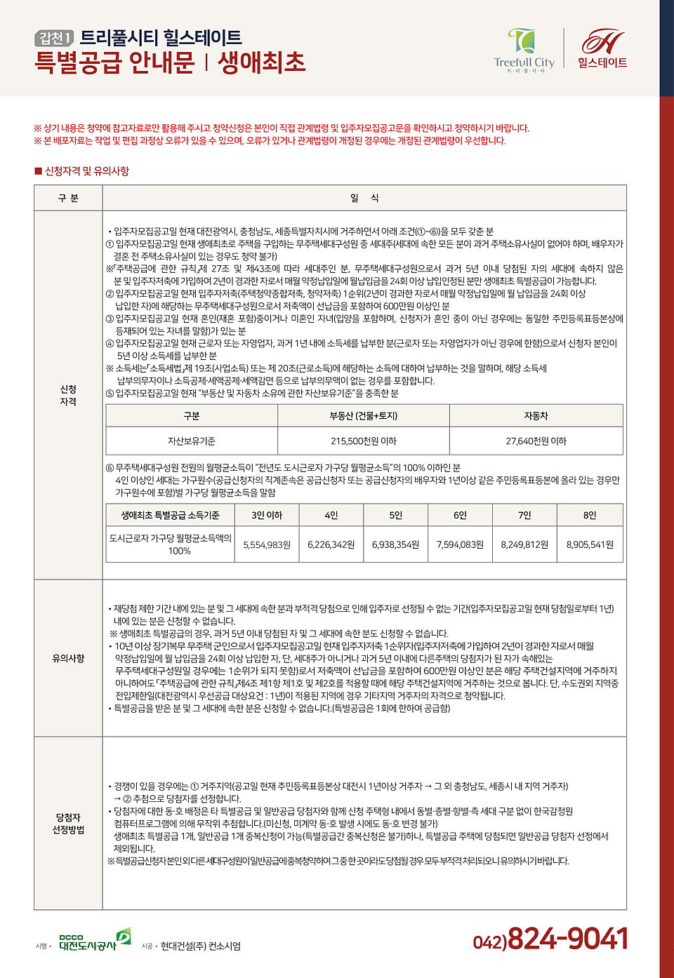 1순위 자격은 입주자모집공고일 기준 대전에서 1년 이상 거주하는 무주택가구구성원의 세대주여야 한다. 견본주택은 대전 서구 도안동에 위치했다.