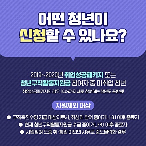 또한 기초생활보장 생계급여, 긴급복지 생계급여, 긴급고용안정지원금, 소상공인 새희망자금, 폐업점포 재도전장려금, 근로자고용유지지원금, 청년특별취업지원 프로그램 참여자, 구직급여 등 다른 제도의 지원을 받는 경우에는 중복해서 받을 수 없다.