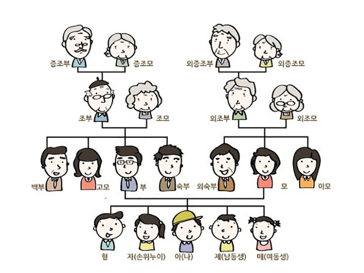 형제와 자매부터 삼촌, 이모, 고모 등은