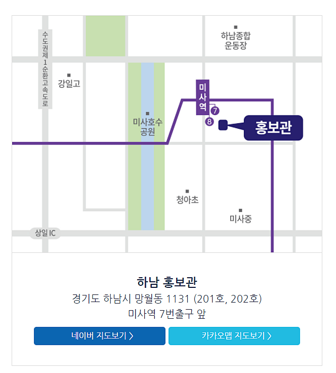 한편 홍보관은 양평과 하남 등 2곳에서 운영 중이다. 양평 홍보관은 경기도 양평군 양평읍 공흥리 723번지에, 하남 홍보관은 경기도 하남시 망월동 1131번지 201호, 202호에 마련됐다.