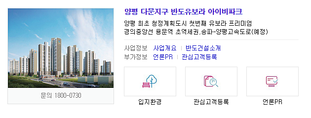 양평 다문지구 반도유보라 아이비파크 분양 분양가