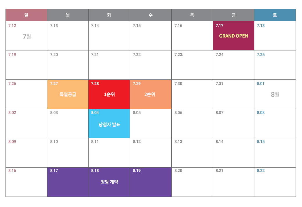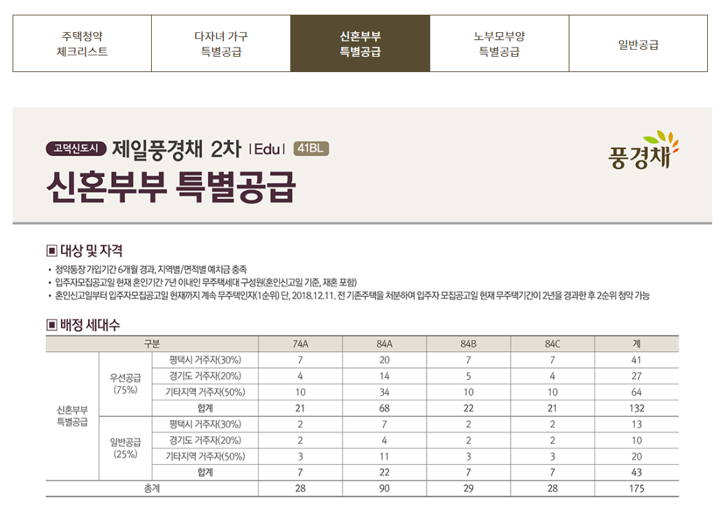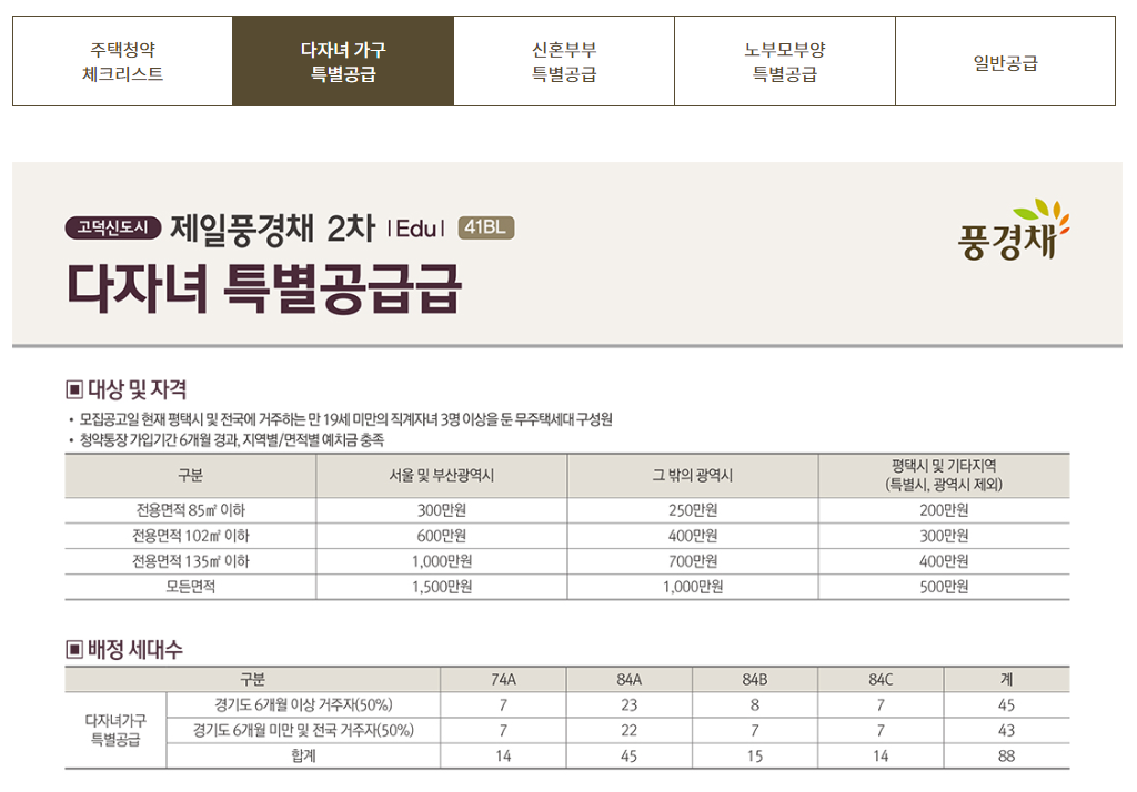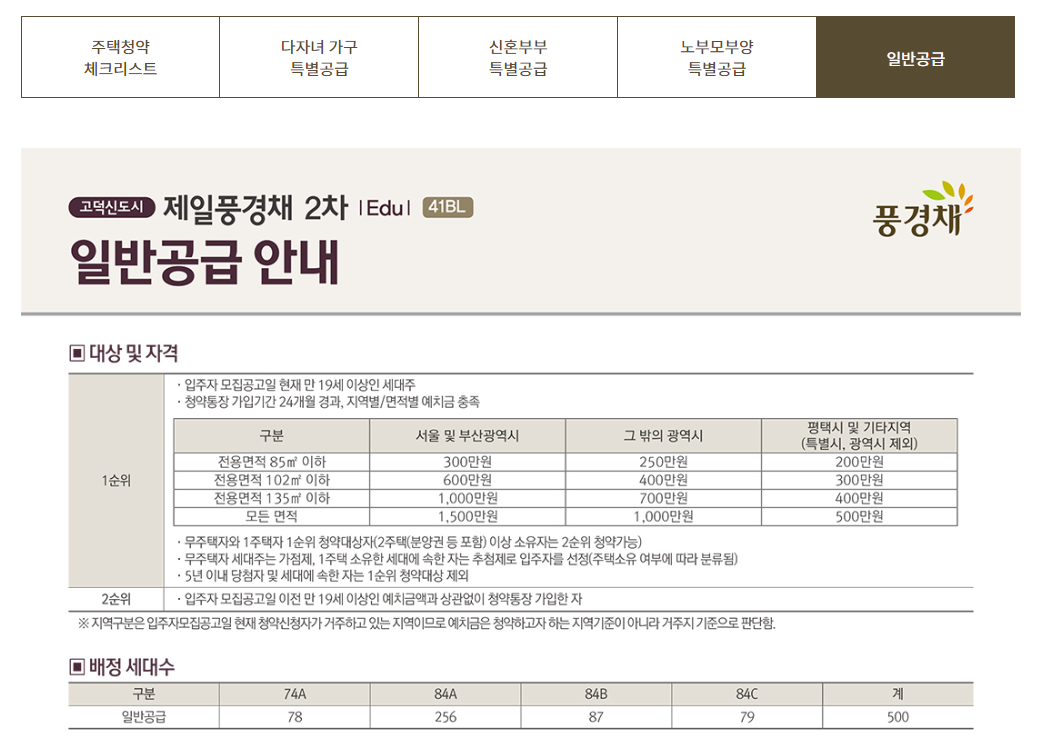 단지는 고덕신도시 A41블록에 들어서며, 지하 1층 ~ 지상 25층, 9개동, 총 877세대 규모로, 전용 75~84㎡의 면적으로 공급에 나선다. 수요자에게 선호도가 높은 중소형 평면위주로 구성됐다. 추후 공급 예정인 3차 A42블록과 함께 고덕신도시 단일브랜드 최대규모의 브랜드타운을 이룰 전망이다. 신규 분양단지에 대해서 궁금하신 분들은 아래를 참고하세요.