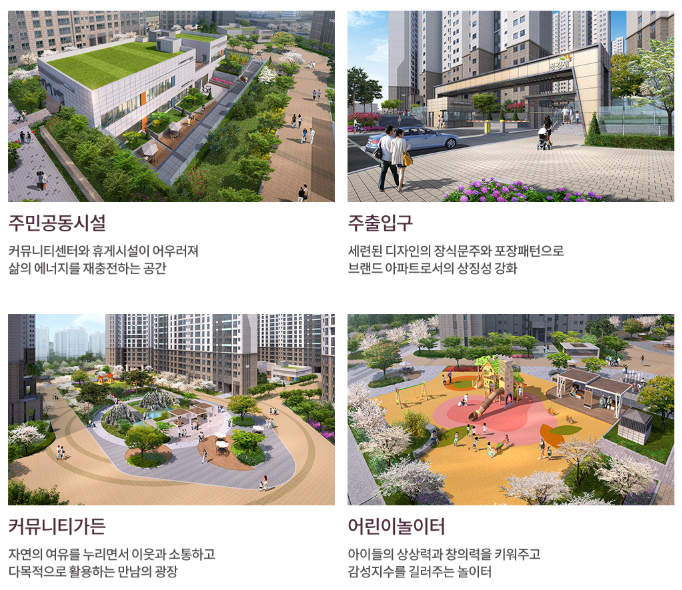 지상에 차 없는 친환경 공원형 단지로 설계해, 입주민의 여가 공간으로도 활용할 수 있는 환경을 갖춘다. 또, 단지 내 세대의 주차를 100% 지하에 할 수 있게 해 입주민들이 편리하게 차량이동을 할 수 있도록 설계했다.