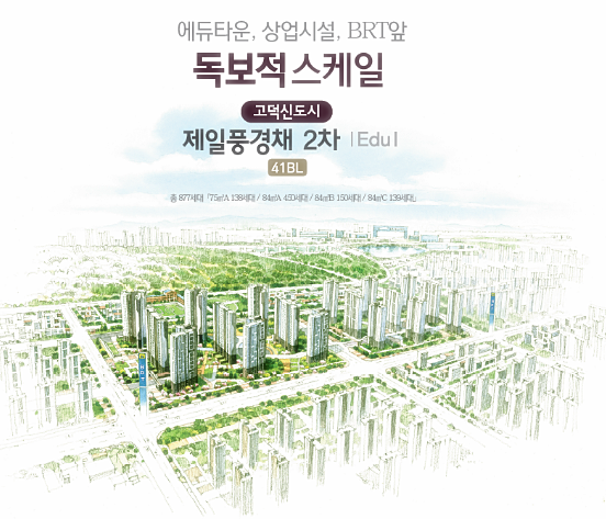 탁월한 생활환경에 주목받는 신도시 ‘전성시대’입니다. 교통망 확충·쾌적한 자연환경·직주근접·명문학군 등 갖춰진 곳은 항상 인기가 좋은데요. 평택고덕, 양주옥정 등 수도권 신도시서 분양 앞둬 이목이 집중되고 있습니다. 이번 시간에는 고덕신도시 제일풍경채 2차 에듀에 대해서 아래에서 확인해 보세요.