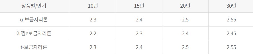 보금자리론 대출 금리안내