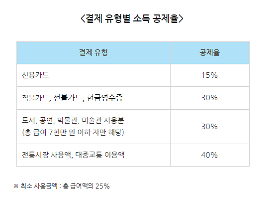 카드 소득공제액 계산법