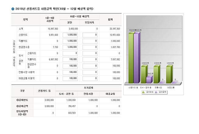 이용하면 최저사용금액으로 제외되는 사용액수는 공제율이 낮은 시기·사용처부터 반영, 납세자에게 가장 유리하게 적용돼 9월 사용분까지 소득공제액이 산출된다.