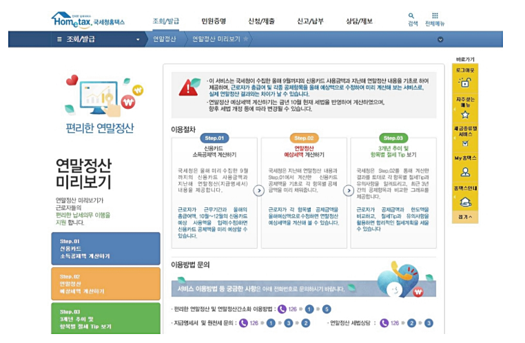 연말정산 미리보기 서비스 바로가기 : 카드공제 확대