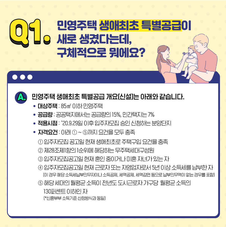 Q. 민영주택 생애최초 특별공급이 새로 생겼다는데, 구체적으로 뭐에요?
