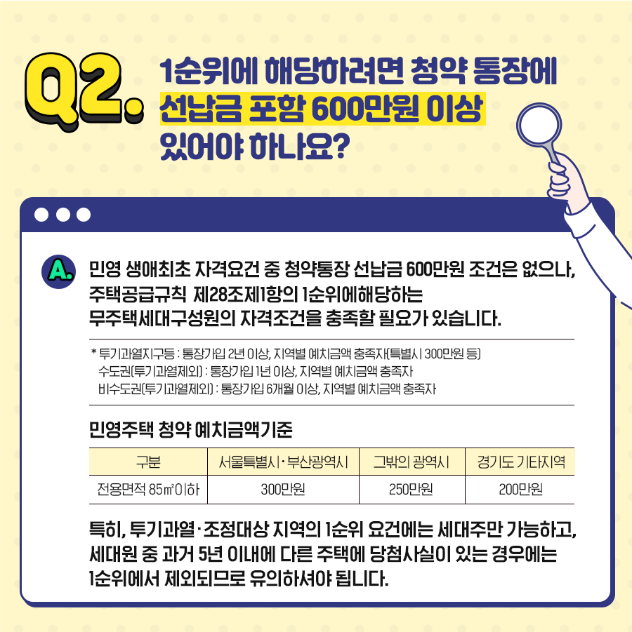 Q. 1순위에 해당하려면 청약 통장에 선납금 포함 600만원 이상있어야 하나요?