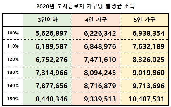 네번째로 소득기준의 경우 해당하는 가구의 월평균소득이 전년도 도시근로자 가구당 월평균소득의 130% 이하이어야 합니다. 더 많은 사람들이 적용받을 수 있도록 2021년 1월이후에는 소득기준이 더 완화됩니다.
