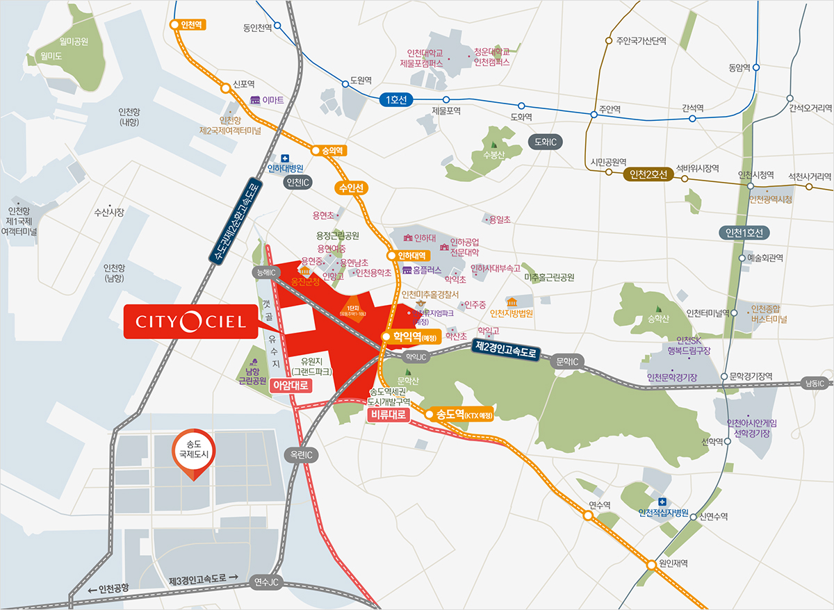 ※ 본 홈페이지의 내용은 [인천광역시 고시 제 2019-136호 용현·학익 1블록 도시개발사업 구역지정(변경), 개발계획 수립(변경), 실시계획(변경) 인가 및 지형도면 고시]에 근거 한 것으로 사업진행