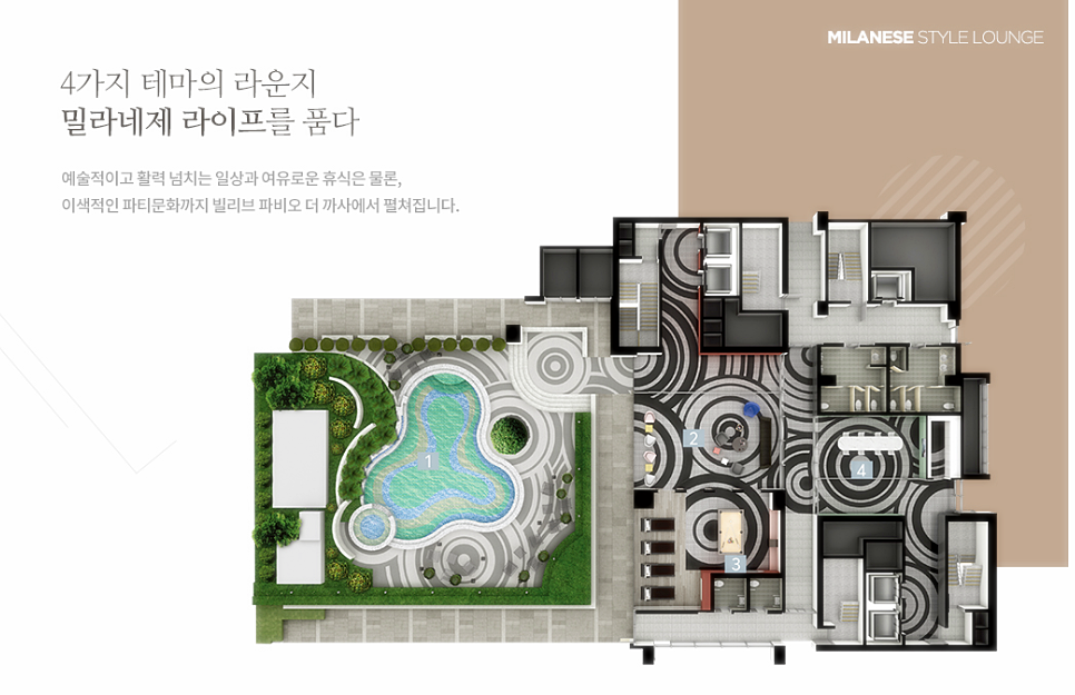 여기에 입주민들을 위한 4개의 라운지도 갖췄으며, 세대 내부에는 이탈리아 명품 주방가구 페발까사가 무상으로 제공된다.