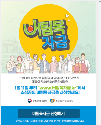 | 소상공인 버팀목자금 추가신청 예약 후 방문 신청’ 방법 (0) | 2021.02.16 |
