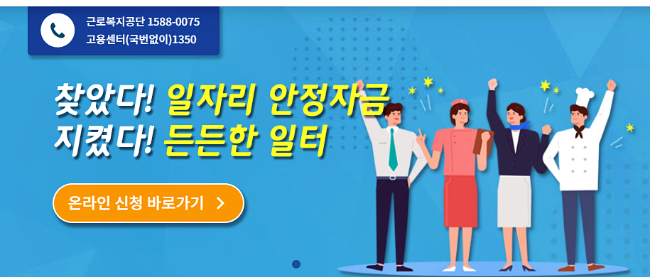 - 신분증 및 제출서류 지참 후 거주지 또는 근무지 관할 고용센터에 방문하여 신청