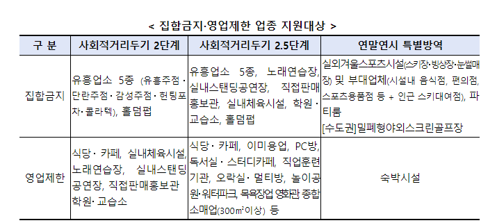 * (수도권) 거리두기 2.5단계 (비수도권) 거리두기 2단계 (공통) 연말연시 특별방역