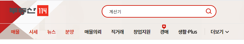 114 사이트 들어왔으면 상단 검색창에 계산기 입력해 보세요. 아래와 같이 바로 다양한 부동산계산기 메뉴를 볼 수 있습니다.