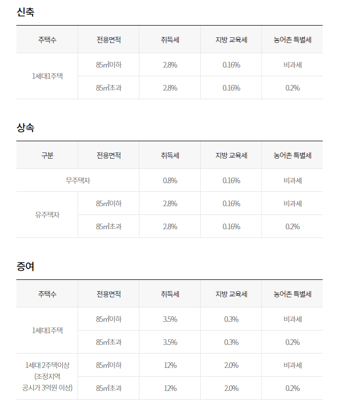 계약일 : 2020년 7월 10일 이후 계약하거나, 2020년 8월 10일 이후 잔금을 납부한 경우 개정된 취득세율이 적용됩니다.
