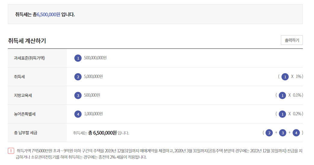 | 취득세는 총 6,500,000원 입니다.( 2 + 3 + 4 ) |