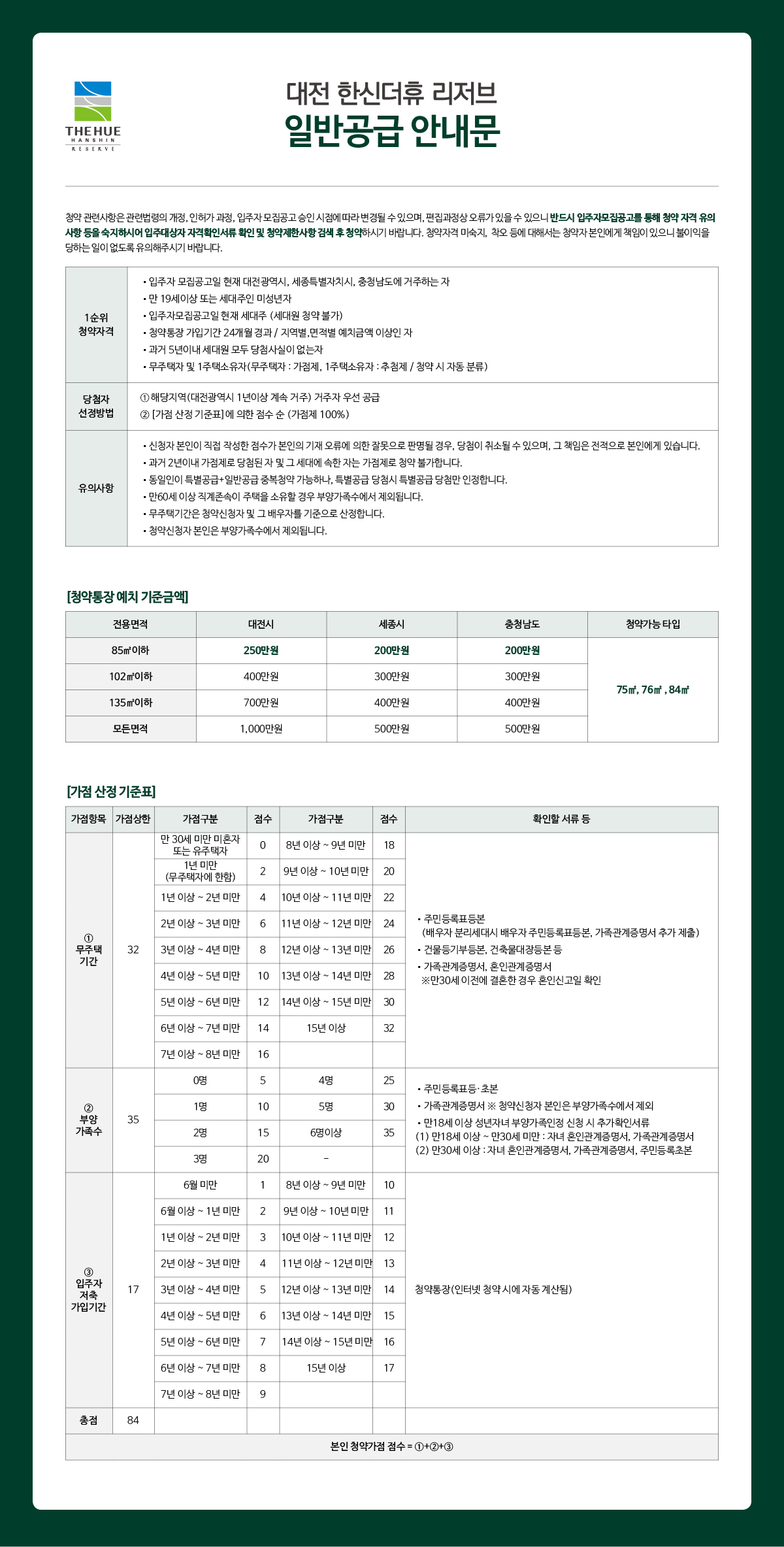 대전 한신더휴 리저브 분양가 청약1순위 당첨되려면