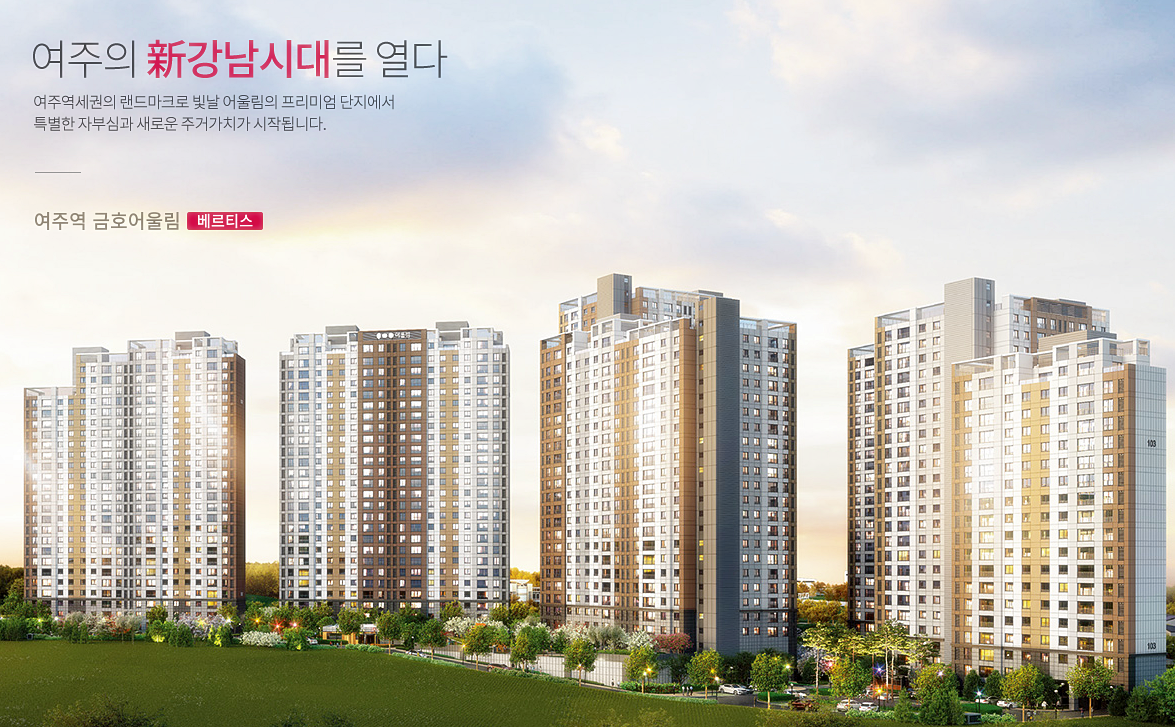 경강선 여주역세권 교동2지구에 여주 첫 ‘금호어울림’ 브랜드 아파트 분양합니다. 세종초(병설유치원), 세종중, 여주고, 도보권으로 최적의 학세권 입지 자랑하며 지하 1층~지상 27층, 7개동, 전용면적 84~136㎡, 총 605가구입니다. 그럼 이번 시간에는 여주역 금호어울림 베르티스에 대해서 자세하게 아래에서 알아볼께요.