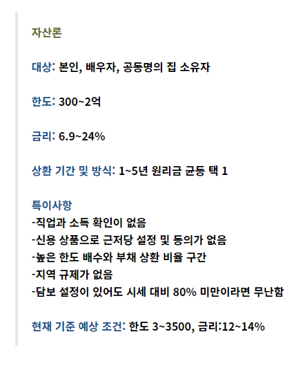 후순위 담보대출의 경우, 선순위 담보대출에 비해 대출 조건이 조금 더 완화된 상품이 있어 이를 이용한다면 필요한 대출 한도를 충분히 받을 수 있다.