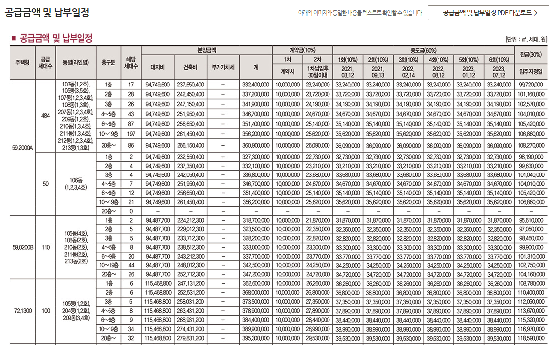 - 중도금 대출협약 조건에 의거 계약금 10% 완납 이후 중도금 대출이 가능하며, 2차 계약금 미납 시 중도금 대출이 불가하므로 이점 유의하시기 바랍니다.