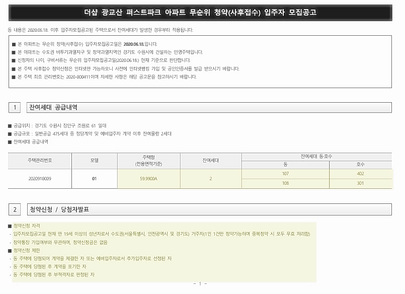 더샵 광교산 퍼스트파크 잔여세대 줍줍 안내입니다. 당연한 완판을 예상하고 계신분들이 많으셨을 단지인데요. 아주 운이 좋게 2세대가 줍줍의 기회로 돌아왔습니다. 과연 누구에게 이 행운이 갈지 기대가 되는데요. 줍줍공고 바로 확인해보세요.