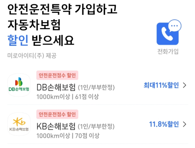 특정 Km이상 주행시 안전운전 점수를 받아야 할인이 가능하다.