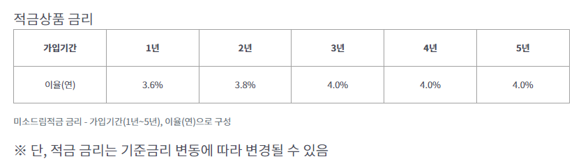 미소드림적금 신청 대상 금리 앱에서 신청하기