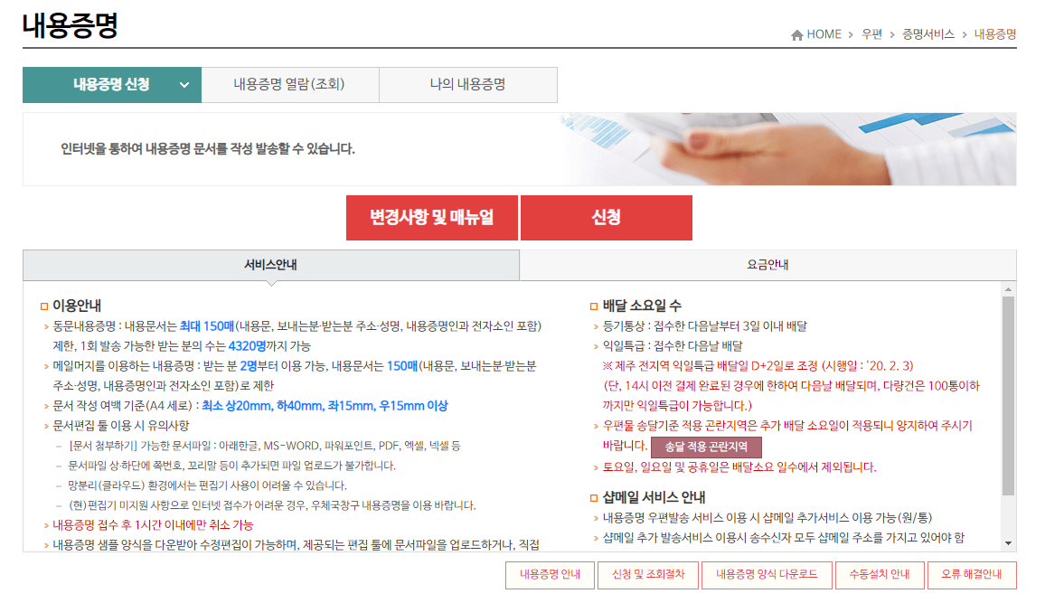 우체국 방문없이 24시간 인터넷우체국을 통해서 내용증명 신청 가능