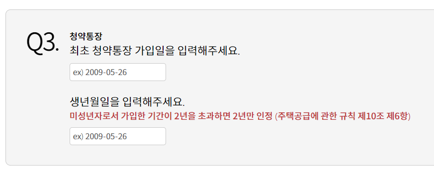 청약자는 무주택 여부(유주택이라면 주택 수)나 무주택 기간만 선택하면 된다.