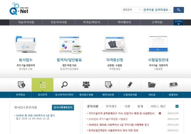 "자격증 무료강의" 큐넷 스펙업 관심자 취업내일배움카드없이 심리상담사자격... 경상일보 2020.05.23. 한편, 큐넷(Q-Net)은 한국산업인력공단이 운영하는 국가기술자격 전문포털사이트로 국가자격증종류와 큐넷 2020 시험일정과 가답안, 사회복지사 원서접수와 합격자발표조회 등을 확인 할 수 있다.