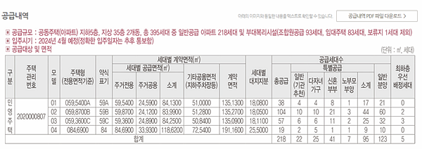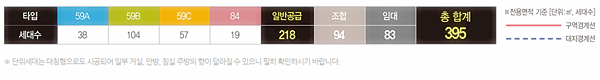 일반 분양 218가구이며 84㎡ 이하 중소형 중심