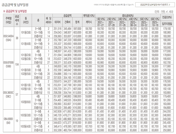 분양가 모델하우스 평면도 계약금
